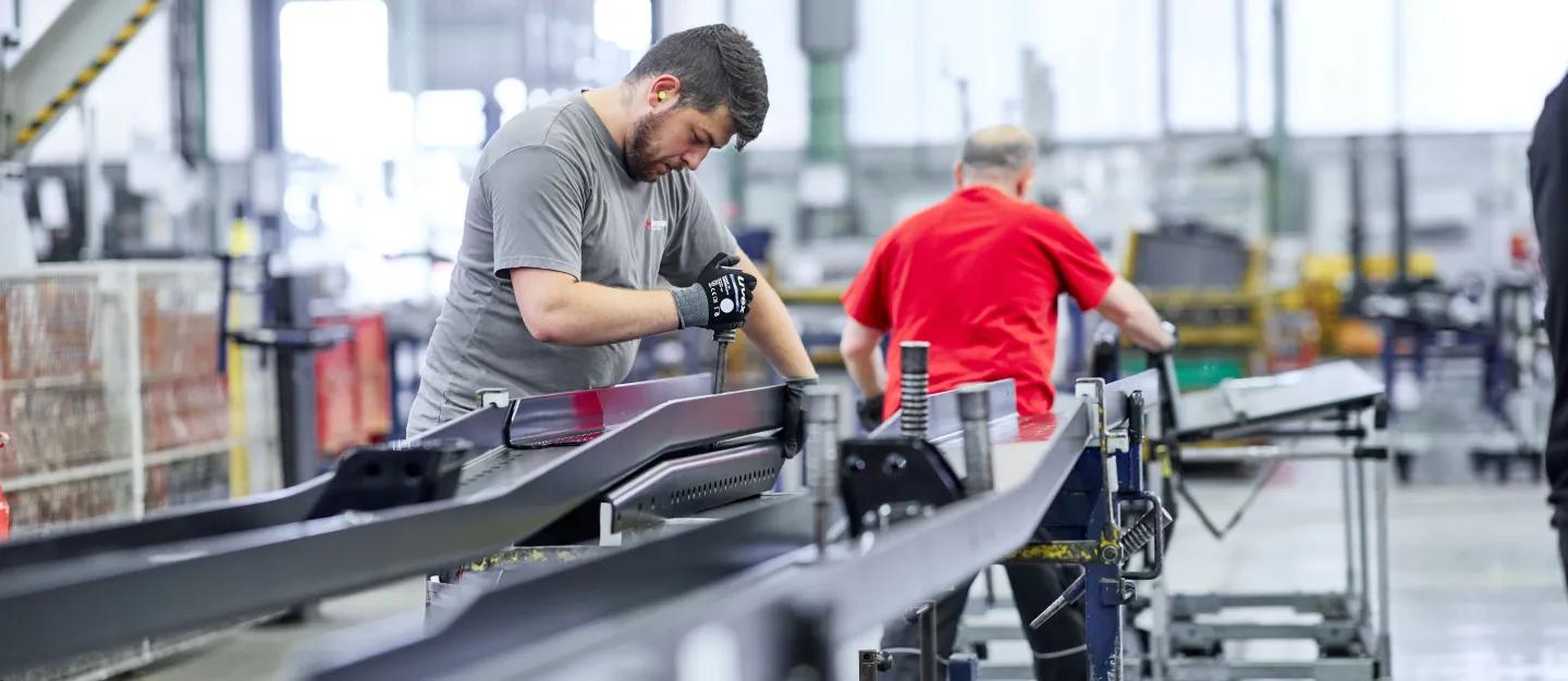 Die immer stärkere Konzentration unserer Kunden auf ihre Kernkompetenzen unterstützen wir am Ende unserer Prozesskette mit der Durchführung von Vormontagen sowohl einzelner Komponenten oder Module als auch ganzer Systeme, wie z.B. Chassisrahmen für schwere LKW. Dabei bieten wir neben der reinen Montagekompetenz auch die Beratung und Durchführung intelligenter logistischer Verfahren sowie Verpackungs- und Transportmanagement an.